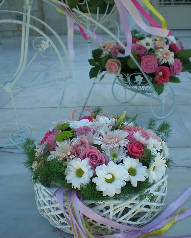 Οι συνθέσεις των προσφορών αποτελούνται από ΛΟΥΛΟΥΔΙΑ ΕΠΟΧΗΣ (Τριαντάφυλλο, Ζέρμπερα, Λίλιουμ, Λυσίανθο, Φρέζιες, Ορχιδέα, Χρυσάνθεμα κτλ.) της επιλογή σας!